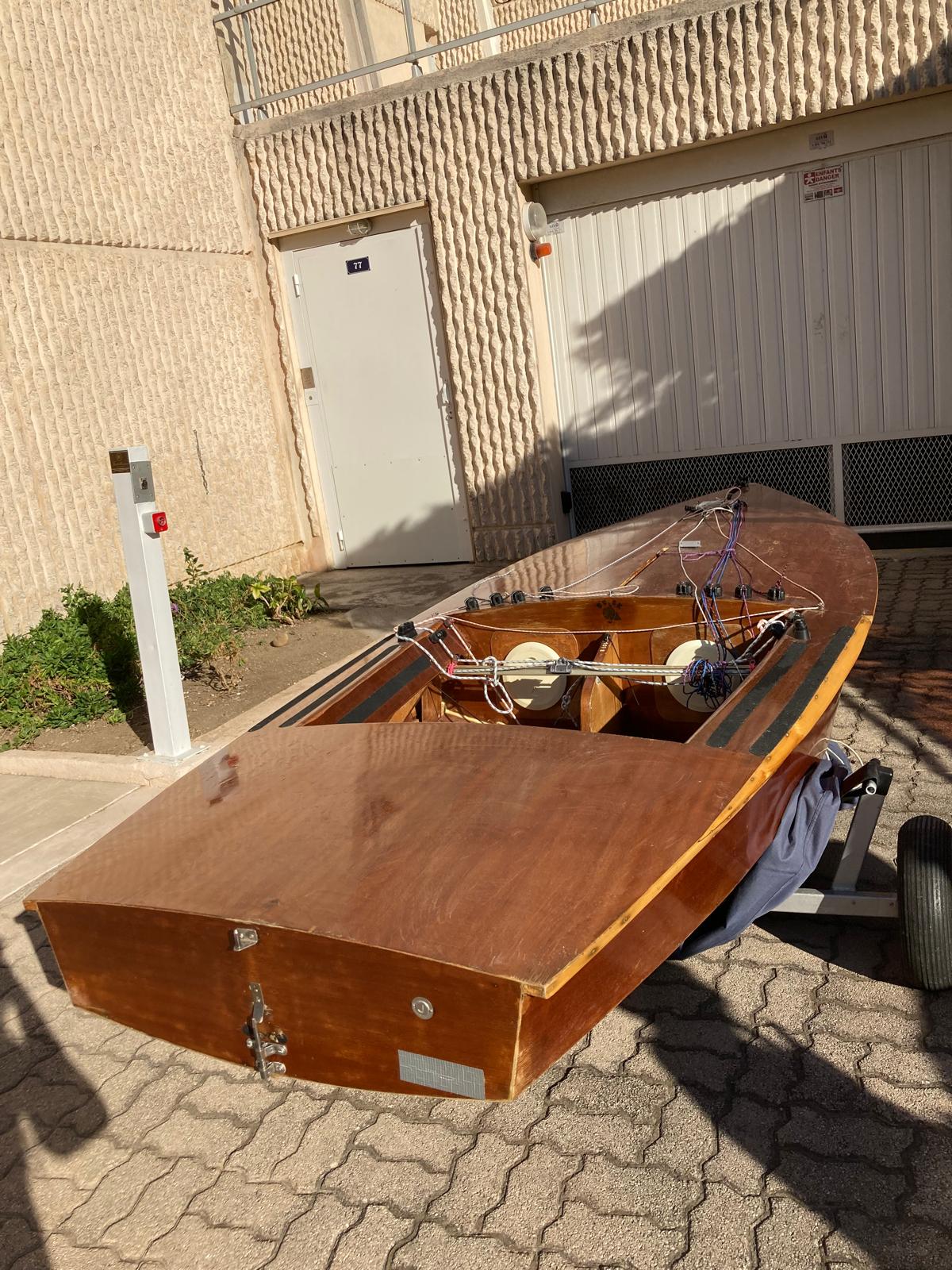 Cette Yole en bois est stocké dans un garage à l’abri de l’humidité.