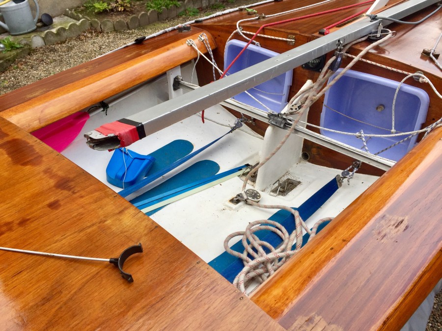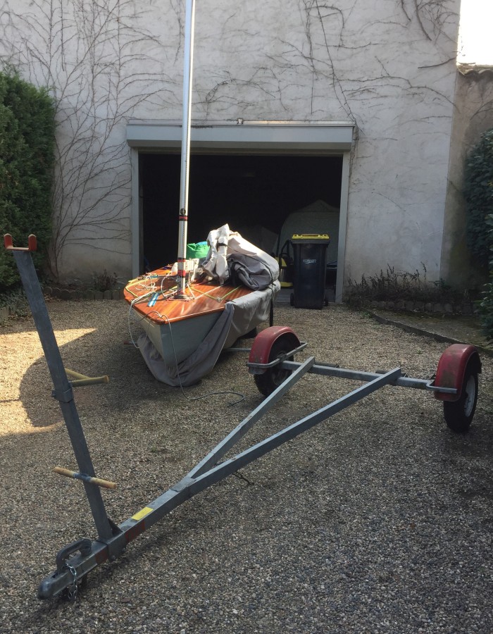 Vente yole ok coque polyester pont bois vernis Henriksen avec double remorque trois voiles parfait état plus taud pont et coque