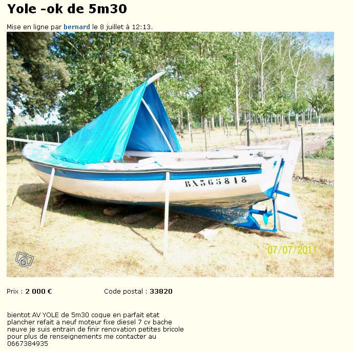 Attention, contrairement au texte de l’annonce ; ce n’est pas une Yole-OK :