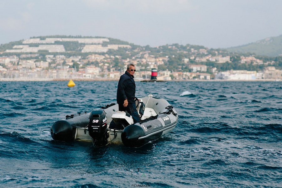 Pour conclure cette revue d’effectif ,il faut aussi noter les absences de Pierre Gary ,présent pour aider à la sécurité, mais les conditions étaient un peu trop soutenues pour notre valeureux doyen , de Jean Pierre qui à vendu son bateau à un belge qui doit rejoindre notre équipe du sud ,de Glen qui lui à vendu son mat ,et de Jean Christophe déjà blessé lors de l’Europeen qui a préféré se ménager et aller admirer les GC 32 foïler dans la rade de Toulon.