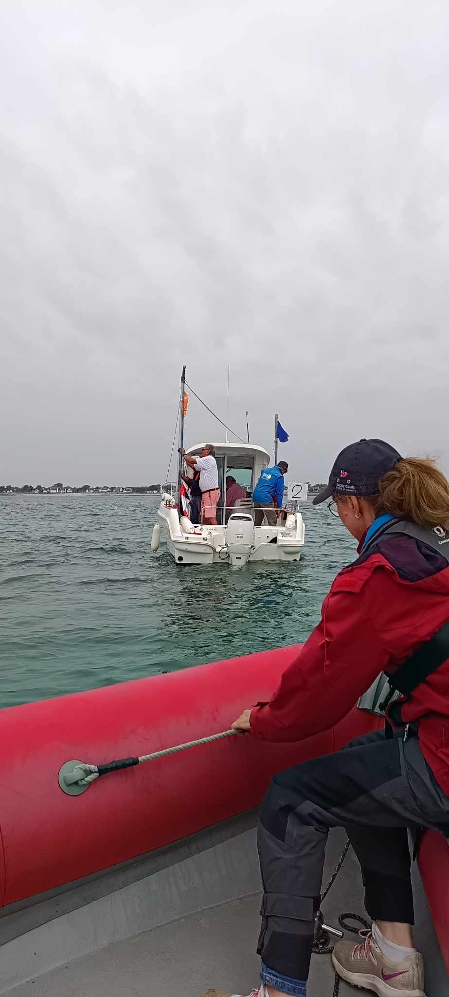 Journée particulière vent de15 a 27nds, trois courses, les trois courrues avec 3 bateaux, le reste de la flotte étant sagement resté a terre ou dessalée. Bruno gagne les 3 manches . la première devant Rémi (deux bateaux seulement terminent cette première manche, nous étions 5 mais Frédéric Casse son stick et rentre a terre chercher un autre safran.je dessale pres de la bouée de près et me rebousille l’épaule, impossible de remonter sur le bateau, ni sur le premier zodiac, heureusement le deuxième zod a une échelle, je ne peux plus bouger le bras donc regate terminée et peut-être la saison complète😭). A la première bouee de largue alors que les autres virent, Antoine avec son tout bois empanne et explose le cable acier de son hale-bas, la bome sort du mat et la voile sort du mat sur 20cm en au point de drisse, regate terminée pour lui aussi.Deux autres manches sont courrues avec Bruno Frédéric et Rémi, dans le même ordre au classement. Apres un sympathique repas tout le monde est parti reprendre des forces pour le lendemain.