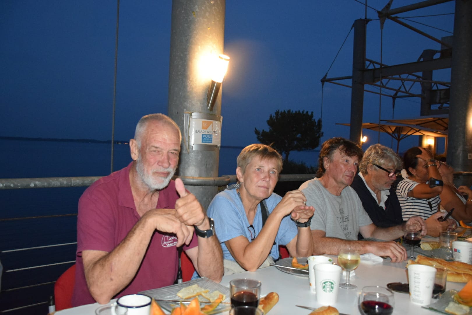 En clôture de cette belle journée, Didier et Philippe nous ont régalé de magrets cuits à merveille et autres plaisirs de bouche autour d’une impressionnante tablée de 25 convives sur la terrasse du club dominant le lac.