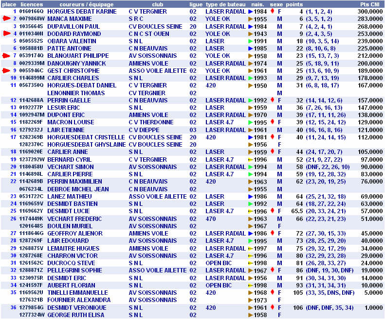Résultat de l’open de Picardie, Régate de Monampteuil.