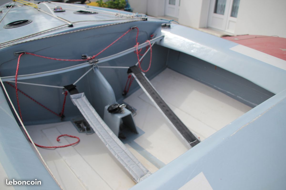 Coque plastique, mât métal, voile et remorque de mise à l’eau