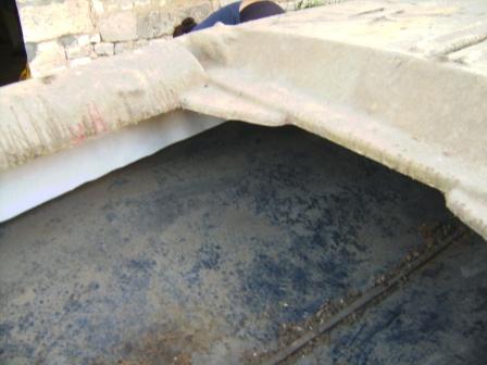 Nous nous sommes également rendu chez la personne qui lui hébergeait depuis quelques années déjà les fameux moules. Ils étaient encore là et à priori en pas si maivais état que ça. Nous les avons chargé rapidement sur le plateau que j’avais emmené, nous avons intercallé entre les deux moules du plastique à bulles, des morceaux de feutre et de moquette (heureusement que JP m’en avait parlé car je n’y aurait pas pensé). Nous avons sanglé tout ça avec soins et nous sommes retournés chez JP.
