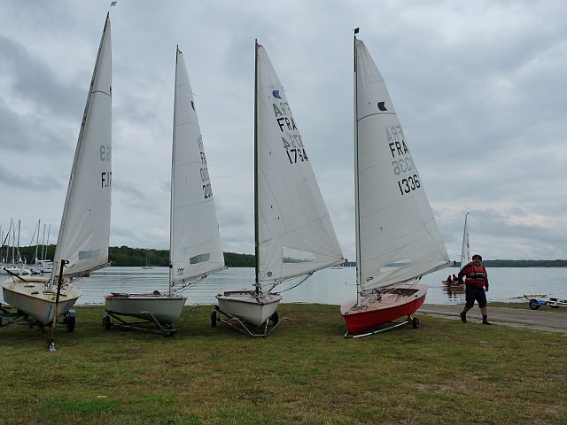 Nous étions plus de 10 au départ, plus que 5 à l’arrivée. Malgré la détérioration des conditions météo (Pluie et très peu de vent), 5 courageux yolistes ont fait le déplacement jusqu’au lac de la Forêt d’Orient pour participer à cette première rencontre avec les vauriens et les finns.