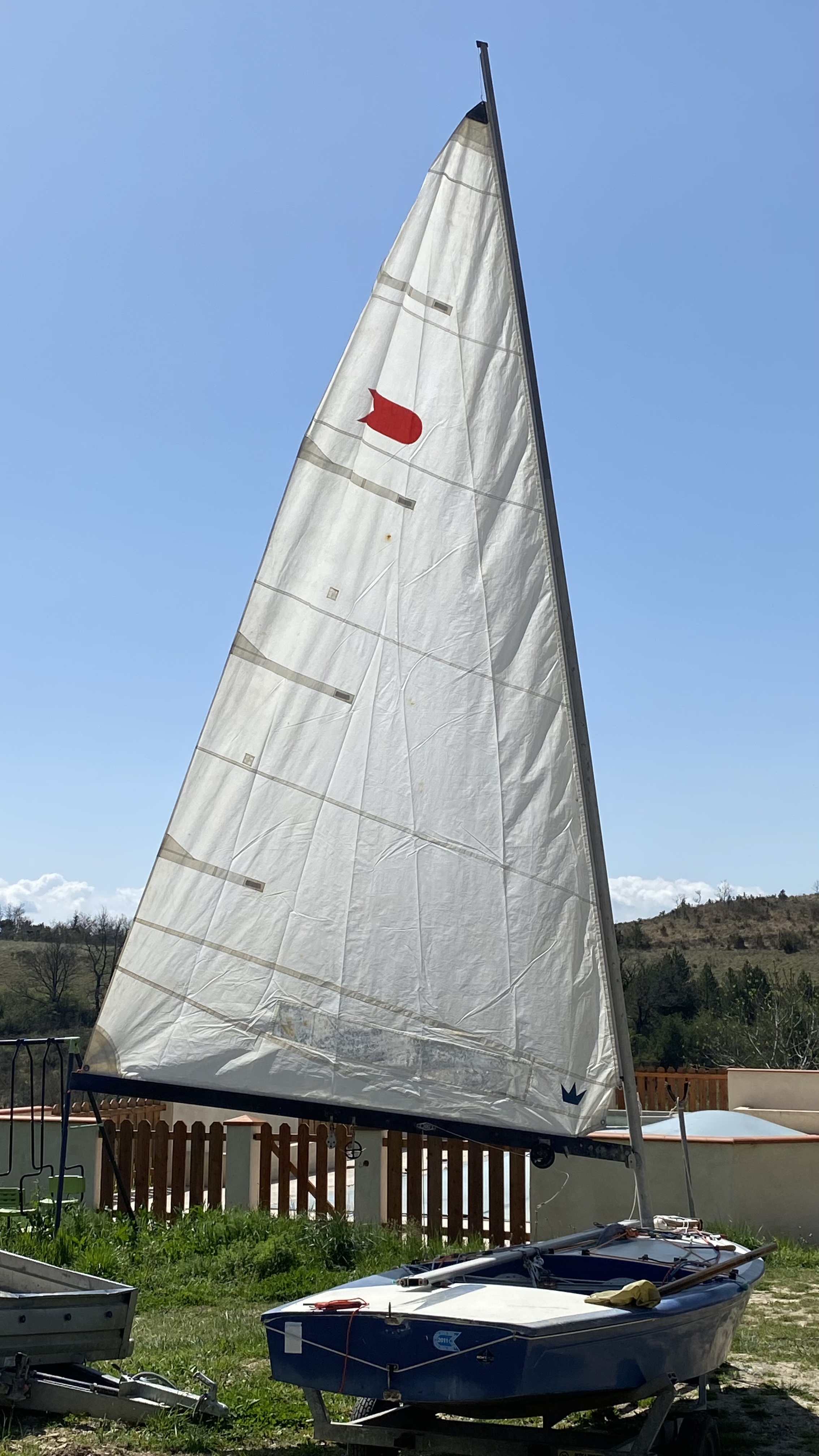 La Yole est dans un état correct propre il y a un peu de résine a faire au niveau du pied de dérive mais rien d’important, çà ne l’empêche pas de naviguer.