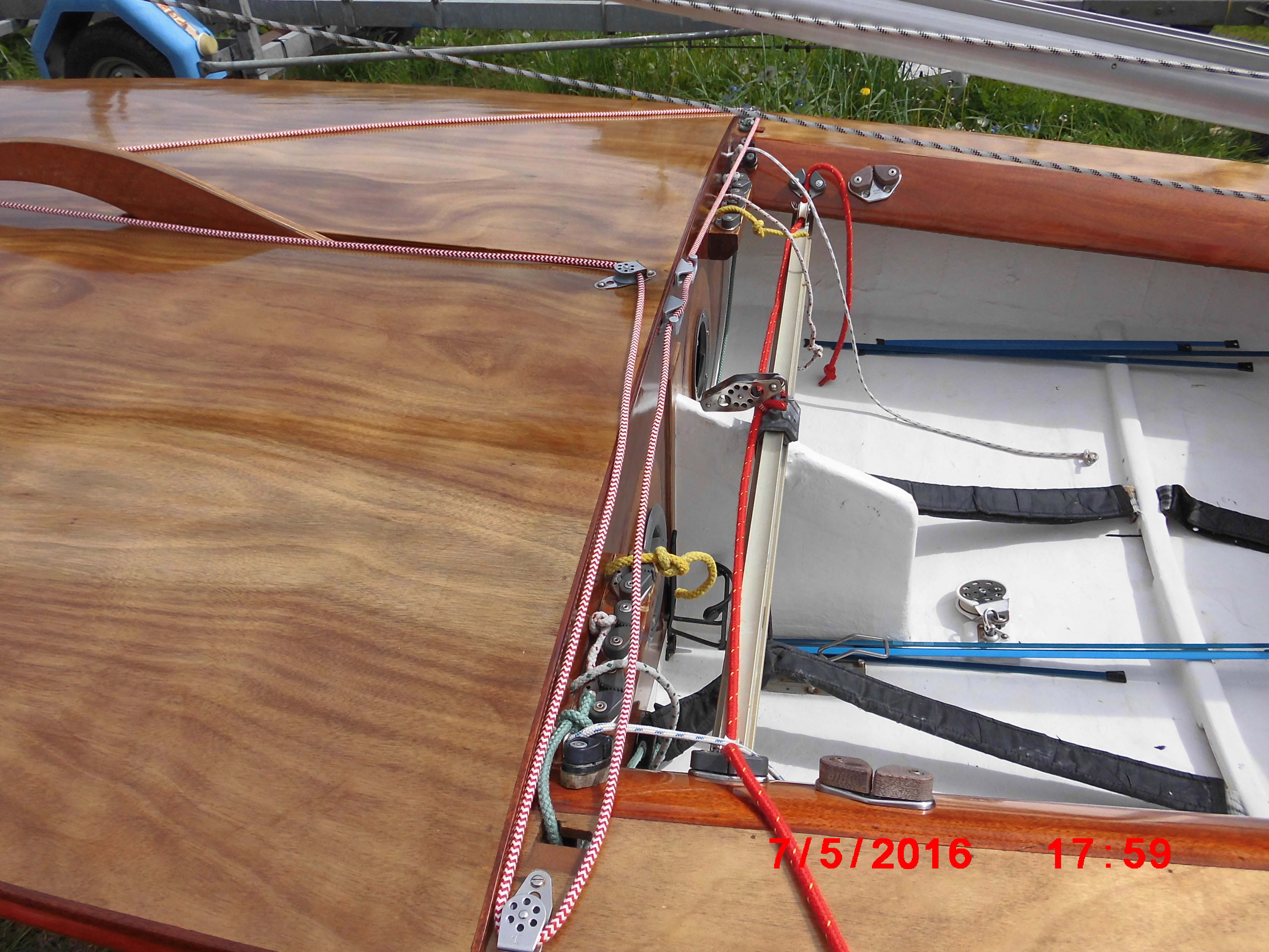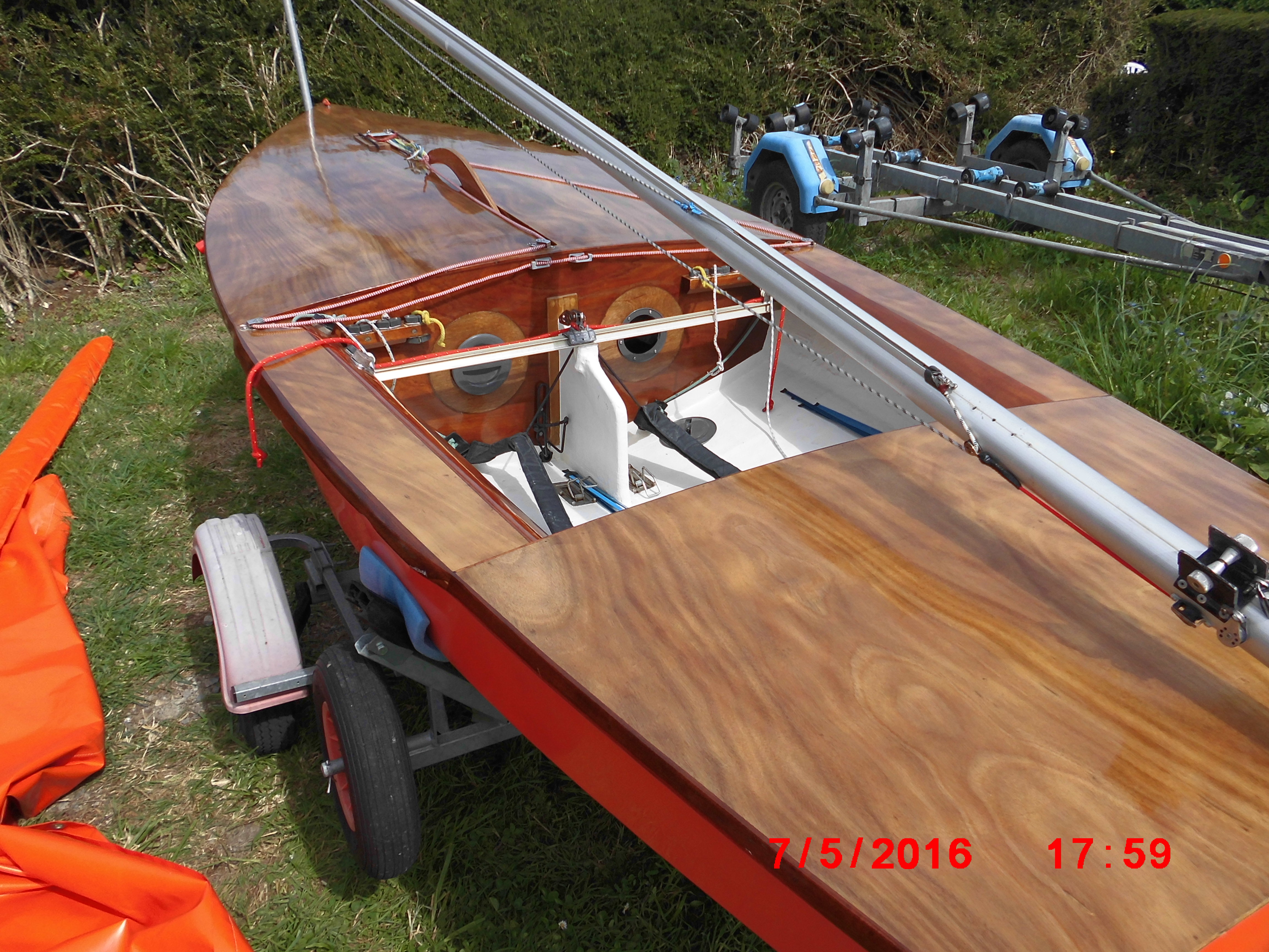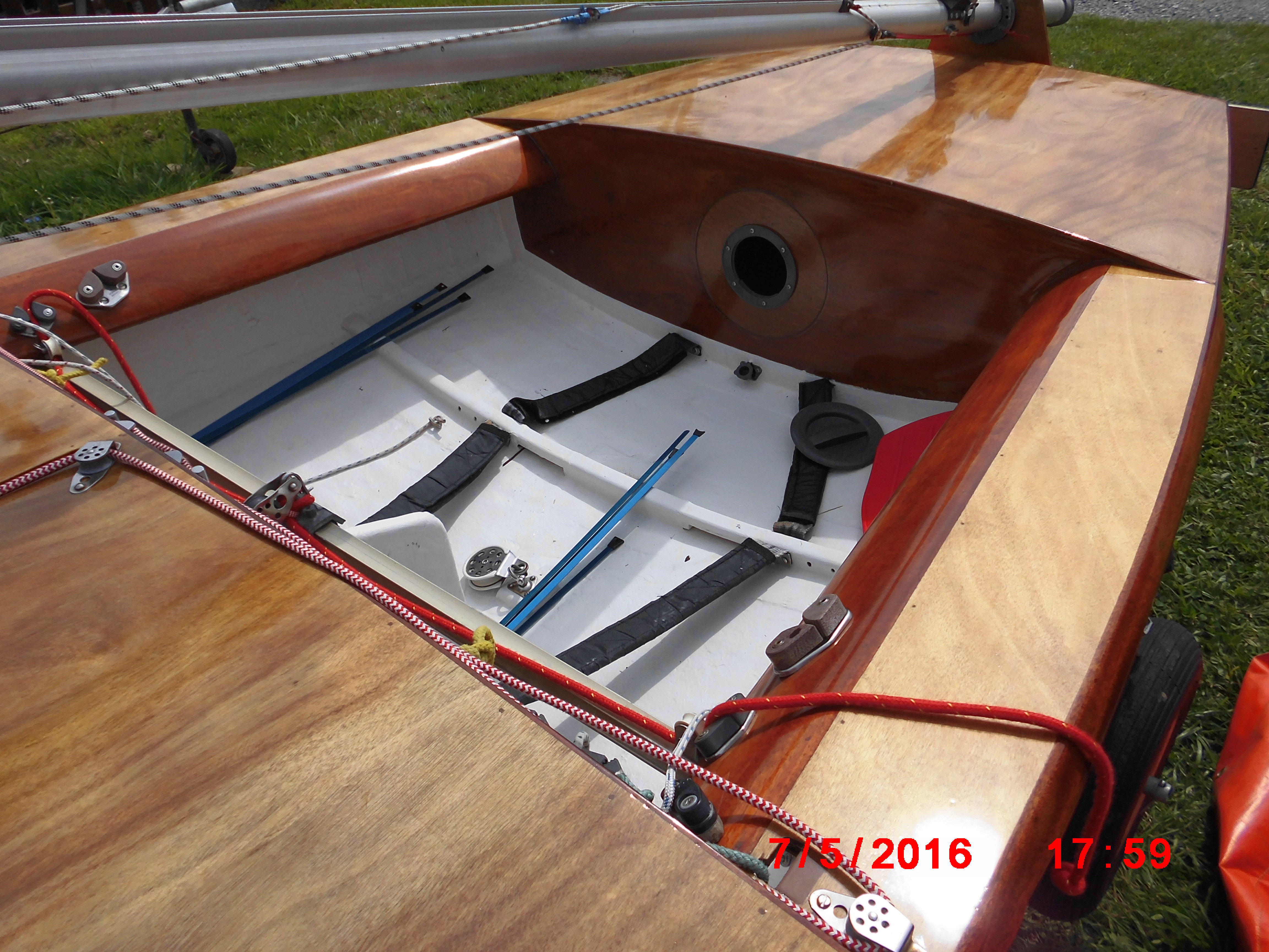 Cette Yole n’ayant pas navigué depuis sa réfection, la coque est comme neuve et sans rayures