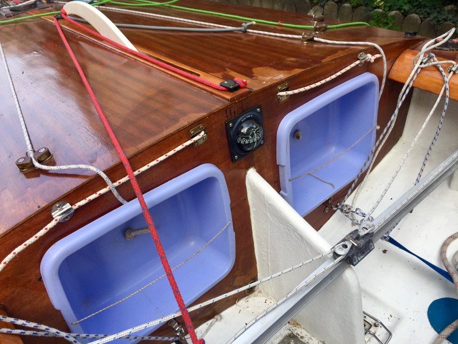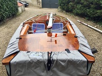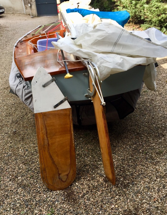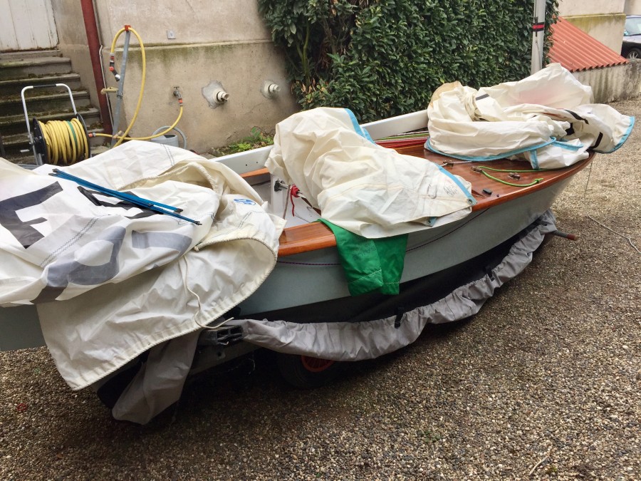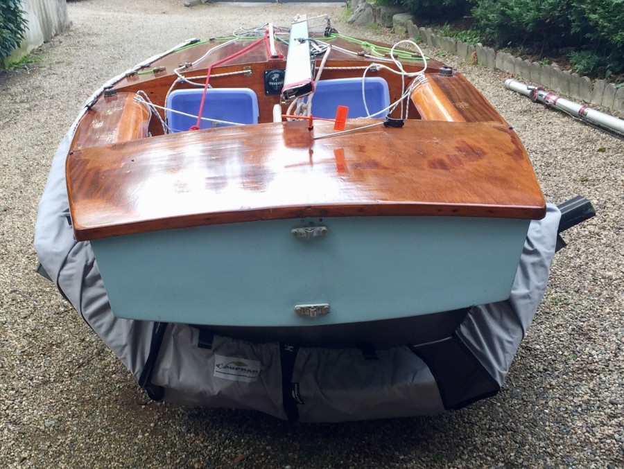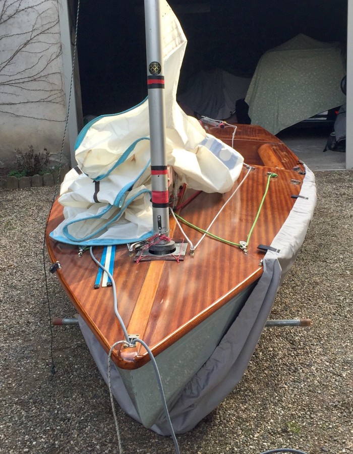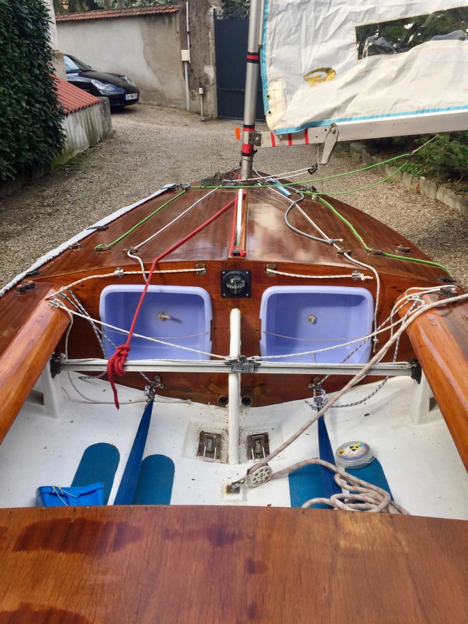 Vente yole ok coque polyester pont bois vernis Henriksen avec double remorque trois voiles parfait état plus taud pont et coque