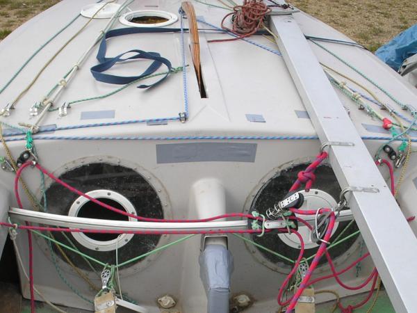 - Remarquez le tuyau de vidange du pied de mât qui rejoint le cockpit.
