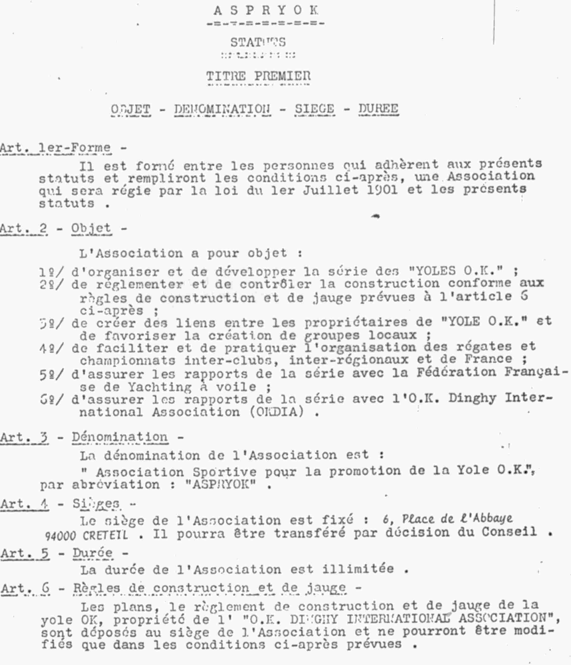 Statuts de l’Association sportive pour la promotion de la Yole OK