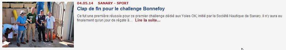 Samedi 3 mai débutait le challenge Bonnefoy qui rassemble une dizaine de participants venus de toute la France. Tous ont répondu avec enthousiasme à l’invitation de la Société Nautique de Sanary pour ce week-end dédié aux Yoles-OK, un dériveur léger en solitaire, datant des années 60. léger en solitaire, datant des années 60. Plusieurs participants pouvaient s’entraîner jeudi et vendredi sur les conseils avisés de Daniel Dahon, référence en la matière. Il nous avouait : "je trouve que cette idée de redonner vie aux Yoles OK est une belle initiative, cela me rappelle de beaux souvenirs".