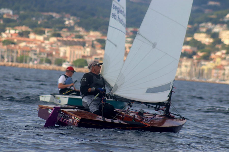 Le jeudi les conditions se sont musclées dans un vent d’Est de 12 à 18 nœuds qui a obligé le comité à déplacer ,pour le bonheur d’Henri , la zone de course en baie de Sanary pour les deux premières manches. La troisième ,pour des raisons de tenu du bateau comité a été rentée dans la baie de Bandol au détriment de la stabilité et la régularité du vent.