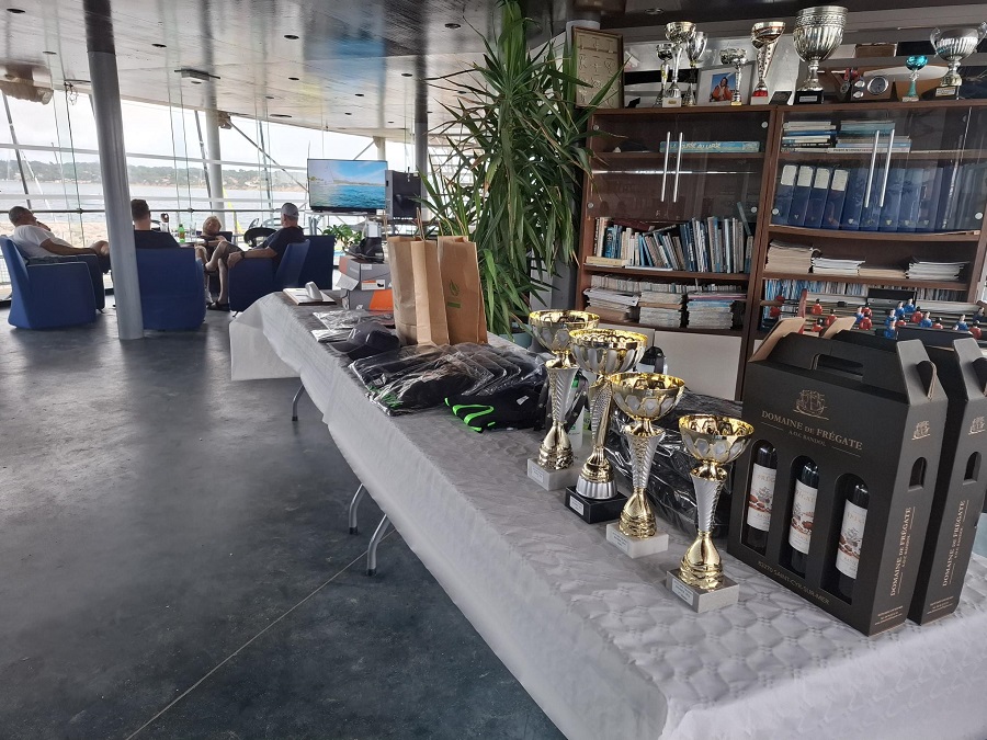 Parkings réservés pour les remorques , véhicules et camping-cars ;Free beer à la fin de chaque journées de navigation ; apéritif de bien venu de qualité et repas des coureurs composé en plat principal d’une daube provençale arrosée de vin de Bandol réalisé par nos bénévoles.
