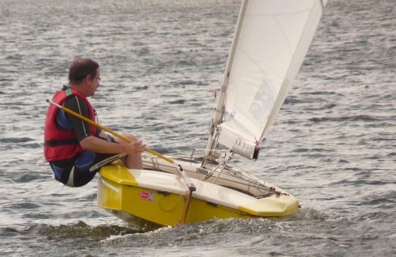 François mettait à l’eau sa Yole-OK fraîchement rénovée mais la dérive n’a pas supporté ses premiers coups de reins. Il est bien rentré au port sur un bouchain et n’a pu terminer la première manche.