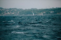 Sur l’eau ça se bat dur avec les éléments et entre concurrents . Le vent est établi à 25 noeuds.