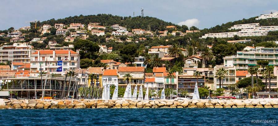 La météo est assez violente aujourd’hui. 30 à 35 nds de mistral avec un beau ciel dégagé. Le comité de course a pris une rapide et sage décision de ne pas nous faire sortir.