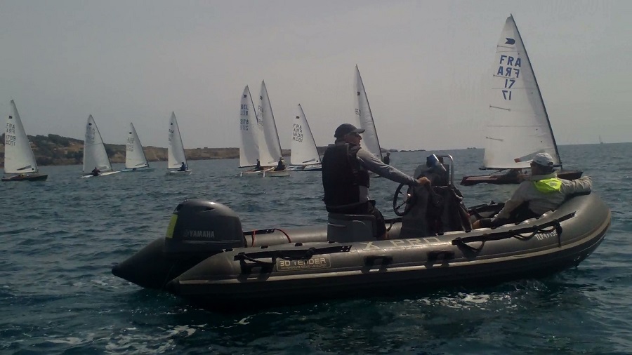 Les trois premiers jours furent consacrés à un entraînement sous la conduite de notre ami suédois Thomas, au top de la classe depuis plus de 20 ans et plus fort que jamais, accompagné de Chris, yoliste de premier plan lui aussi, venu d’Angleterre où il fabrique les magnifiques bateaux Ovington - et assisté à la sécu par Virginie – qui a fait aussi photos et vidéos – et Charles.