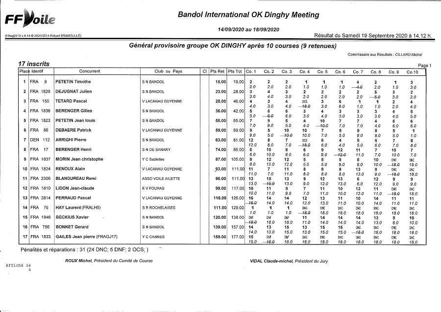 Un Championnat très réussi grâce à des conditions météo particulièrement bonnes et très appréciées par l’ensemble des 17 concurrents inscrits , mais aussi à mettre au crédit de l’équipe de bénévoles de la Société Nautique de Bandol .