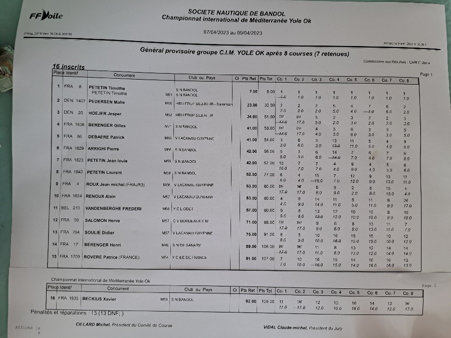 Au cours des deux manches courues , la bataille a été intense entre le bandolais Tim Petetin et le Danois Malte Pedersen , à la faveur de petites erreurs tactiques de son rival, Tim a pris le meilleur sur le plus bandolais des danois ; il s’adjuge ainsi les deux manches de la journée , prenant une sérieuse option pour la suite.