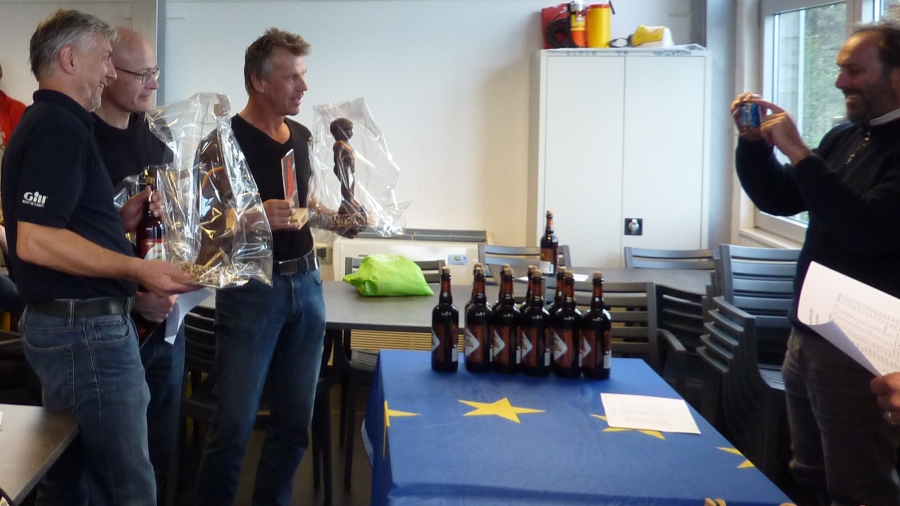 Néanmoins on peut dire que la France était bien représentée avec 6 participants… euh non 5 puisque Florent était sous « GER » , …alors 4 car Thomas est lui bien sous « FRA » mais vit en Belgique …. Bref, tout le monde était content de se retrouver et d’accueillir aussi des nouveaux amis comme Cedric « BEL 131 » avec une YOLE de prêt (mais bien Français) et qui devrait nous rejoindre avec son propre bateau l’année prochaine ( allez Cedric , tu as tout l’hiver pour le finir !).
