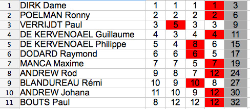 Classement Yole OK ASPRYOK (manches du samedi uniquement).