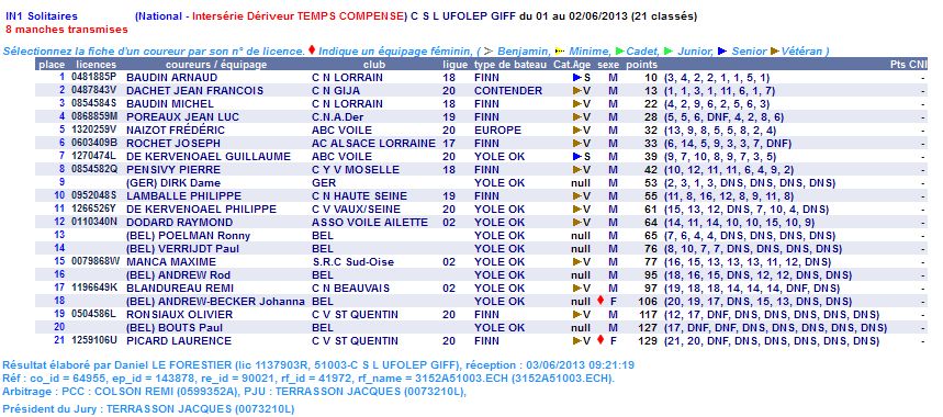 Classement intersérie (sur les 2 jours)