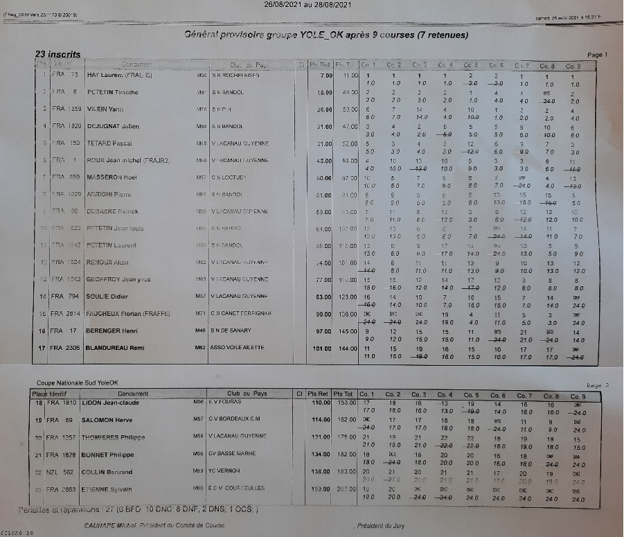 Bilan Laurent impérial pendant toute la régate gagne le National et Timothé très régulier finit 2ème.