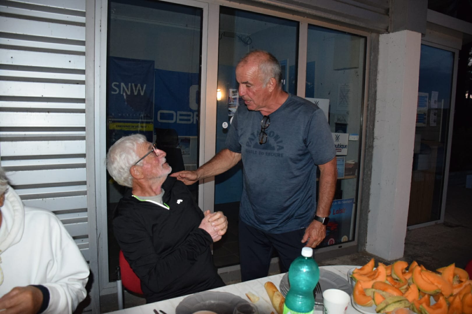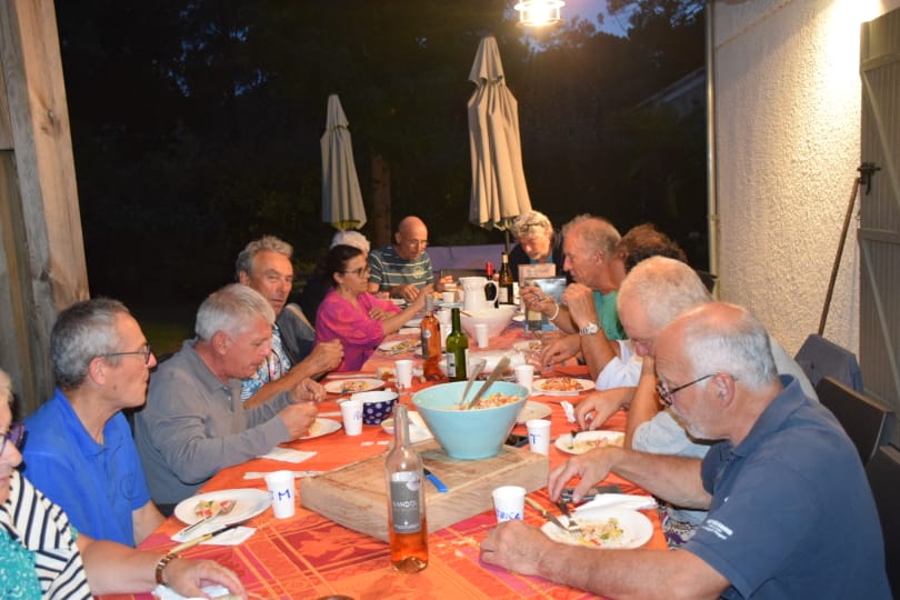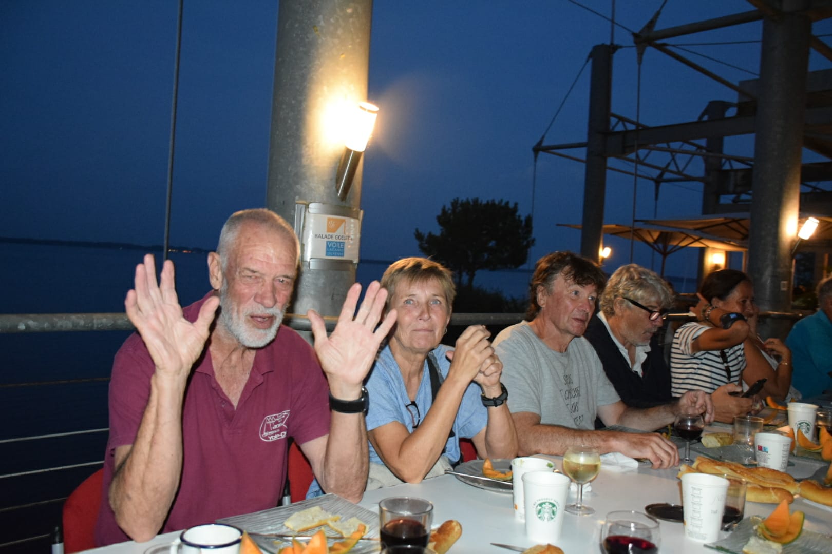 En clôture de cette belle journée, Didier et Philippe nous ont régalé de magrets cuits à merveille et autres plaisirs de bouche autour d’une impressionnante tablée de 25 convives sur la terrasse du club dominant le lac.