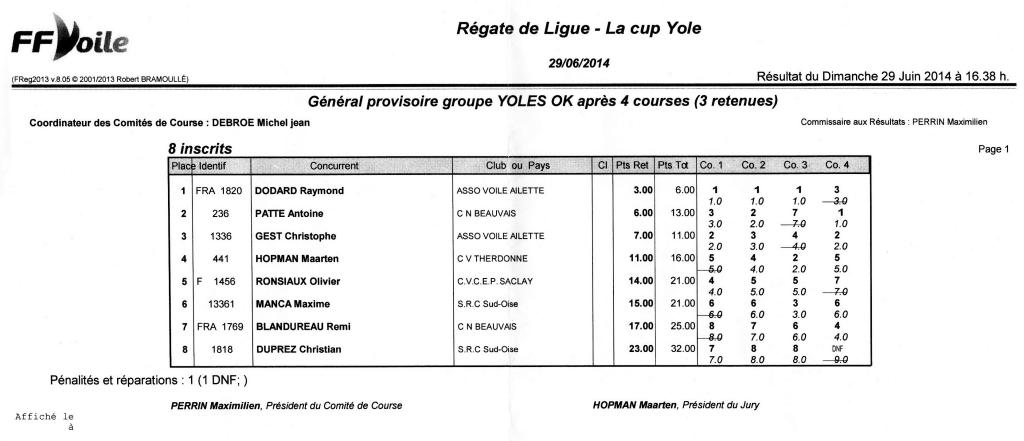 Le vent est retombé. Antoine mène de bout en bout, Christophe deuxième. Il était temps car Raymond parti bon dernier, revient très fort et dépasse toute la flotte pour finir troisième.