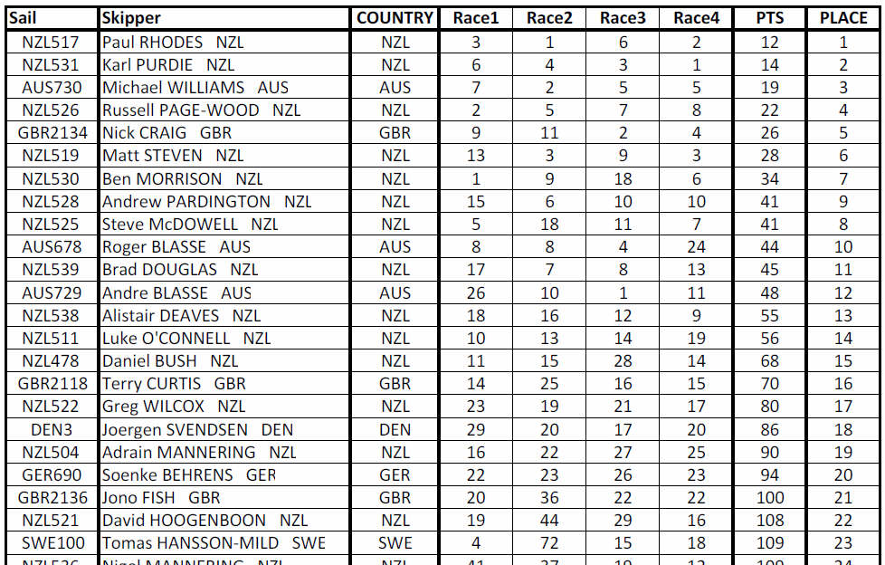 71 participants, un vent moins fort que prévu. L’actuel champion du Monde Thomas, seul suédois, semble hors de portée du titre, par contre le champion du monde 2008, Karl est à 2 point du leader Paul. Un seul européen dans les 10 premiers, à la 5e place : Nick, triple champion du monde de Yole-OK de 2005 à 2007.