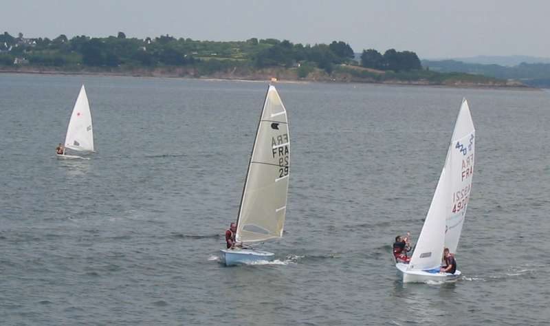 Dés 9h30 la yole est prête à être mise à l’eau ainsi que le Laser de ma fille. Le temps est magnifique et le vent …… absent !!! C’est bien dommage car sont regroupés ici planches, opti, catas et dériveurs venus de tout le Finistère.