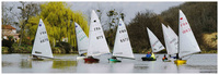 Puis après le café il se fait un peu plus présent on enfile la petite combi d’été et enfin sur l’eau. Le vent vient de partout et souvent de nulle part, les oscillations principales couvrent un angle de.... 90° à 180° une bonne lecture et connaissance du plan d’eau est indispensable, on peut y rajouter un courant important du aux fortes pluies. 3 manches ont eu lieu sur un tout petit parcours, j’ai fait péniblement 3, mon frère Perrig 5. Il m’a bien fallu les 3 manches pour commencer à comprendre ou me situer sur ce plan d’eau.