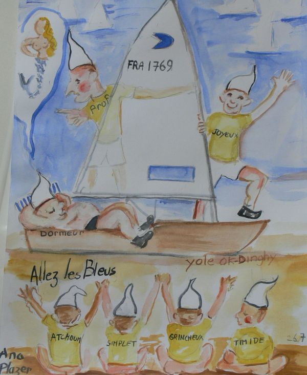 On y va… me jetant à l’eau avec mes deux compatriotes au milieu de ces 41 Yoles OK venues de toute l’Europe (BEL-DEN-FRA-GBR-NZL-POL-SWE…).