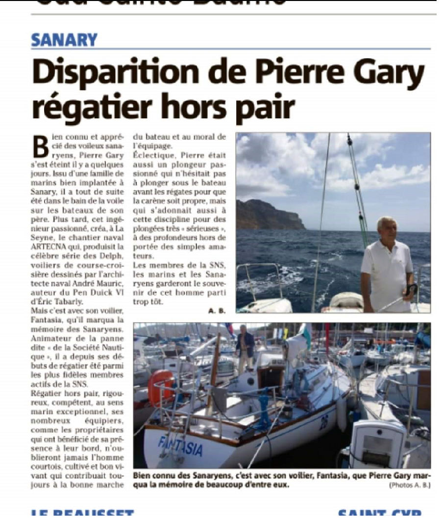 Notre ami Pierre Gary ,yoliste à ses heures , discret ,mais passionné s’en est allé .