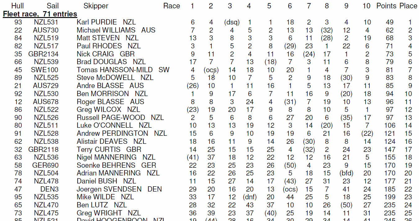 Bravo à Karl Purdie (Nouvelle Zélande) qui a remporté pour la seconde fois (à un point près c’était la 3e fois) le championnat du monde de Yole-OK chez lui.