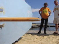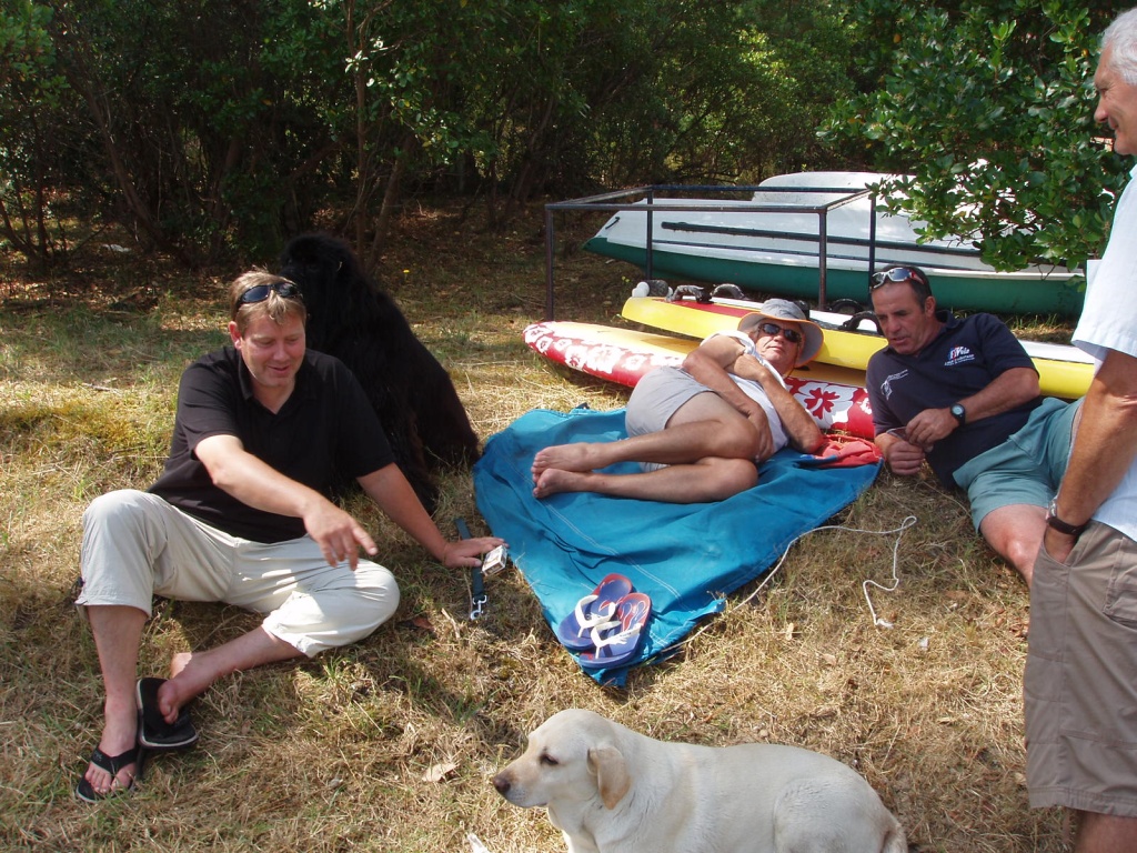 Alain Renoux passe les deux manches de vent en contact permanent avec les eaux chaudes du lac, ce qui lui permet de découvrir 2 jolis trous cachés derrière un renfort de banc latéral dans le cockpit qui mettent à mal l’étanchéité de son bateau.