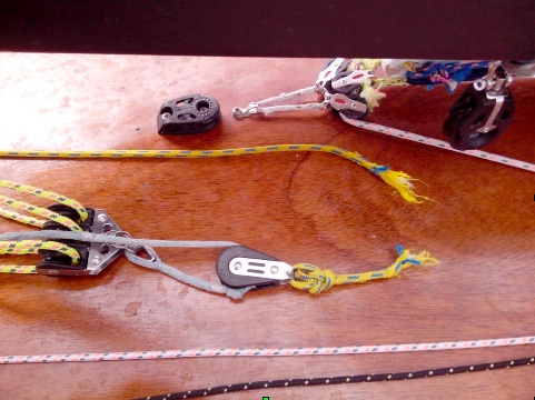 Dans la dernière manche une claque au niveau de la bouée au vent fait chavirer plus d’un bateau dont Maxime que je suivait de près. Je l’évite et entend aussitôt un « clac » violent alors que la grand voile veut partir vers le ciel : palan de hale-bas cassé !