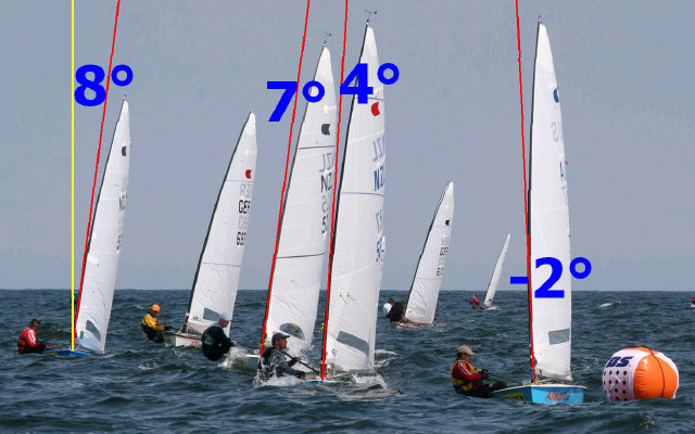 Les réglages sont comme par vent fort, mais vous tirer plus fort. Par exemple sur le cunningham avant le départ, je mets mes 2 pieds contre l’avant du cockpit pour mieux pousser. [5]