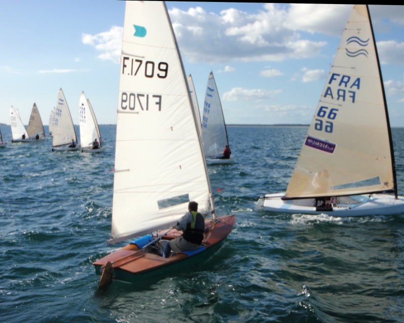La troisième manche a vu Noël et moi-même s’échapper par le bon côté. Noël virant à la première bouée avec cent mètres d’avance sur moi. Sur le dernier bord vent arrière, je reviens à la hauteur de Noël, vire à la dernière bouée en même temps que lui pour finir sur un bord de largue de 300 mètres et … être battu à la photo finish.