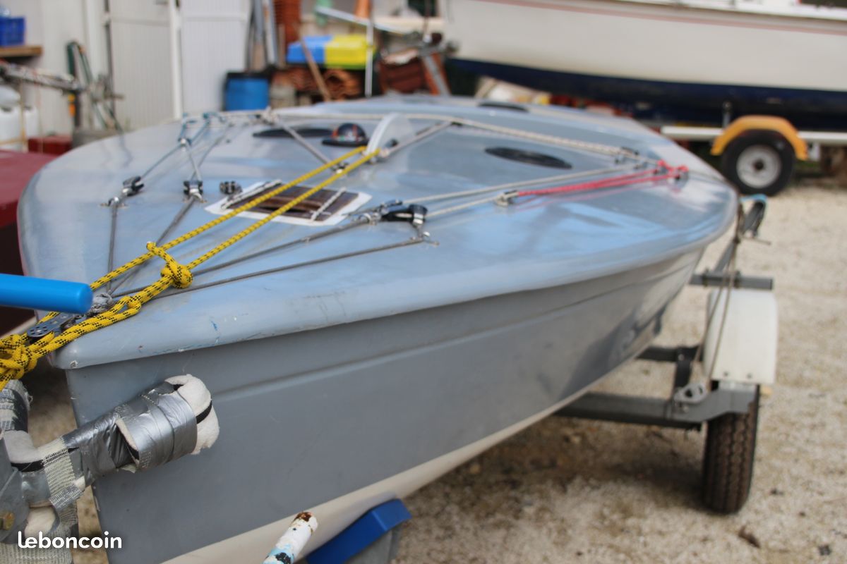 Coque plastique, mât métal, voile et remorque de mise à l’eau