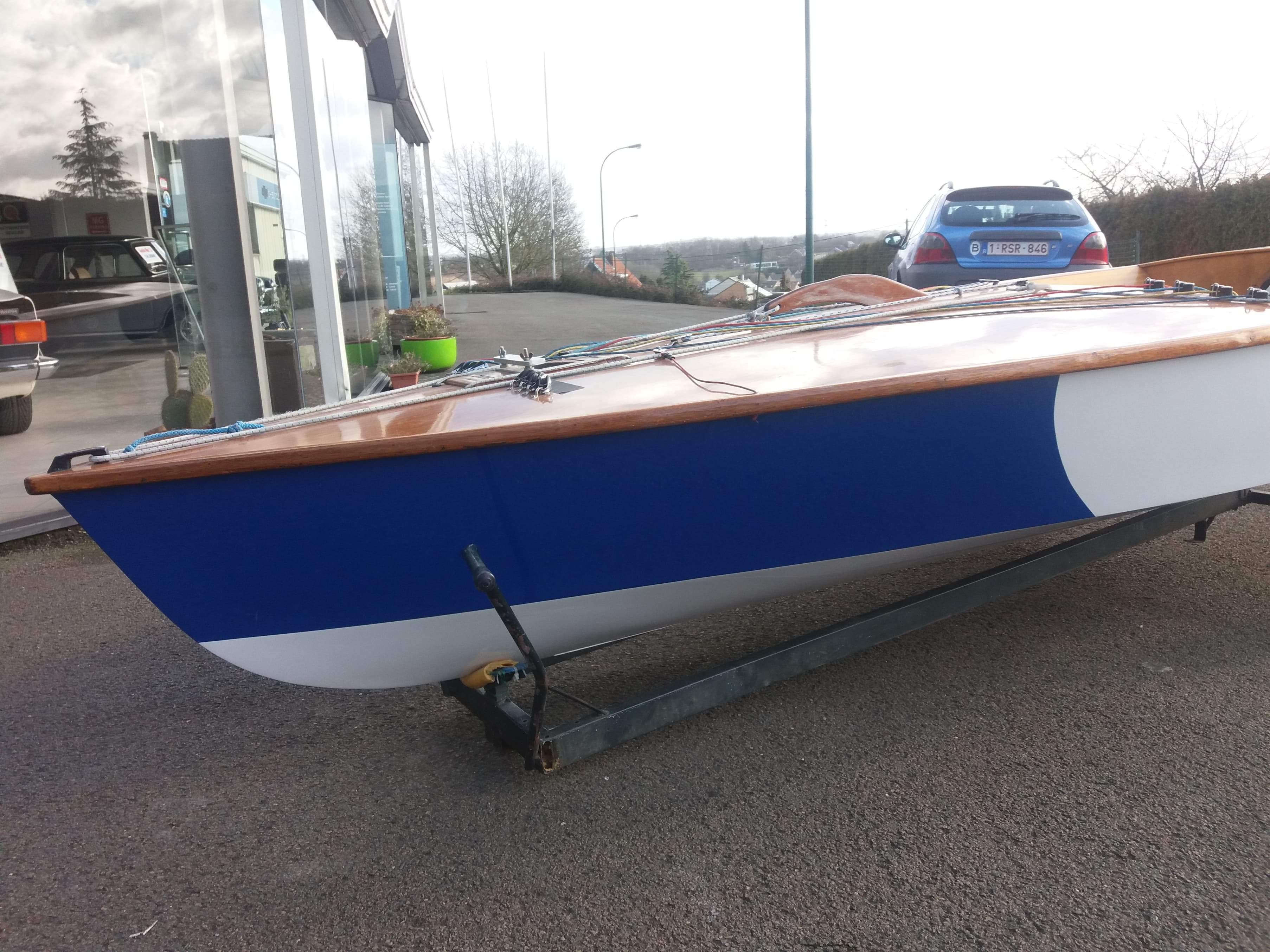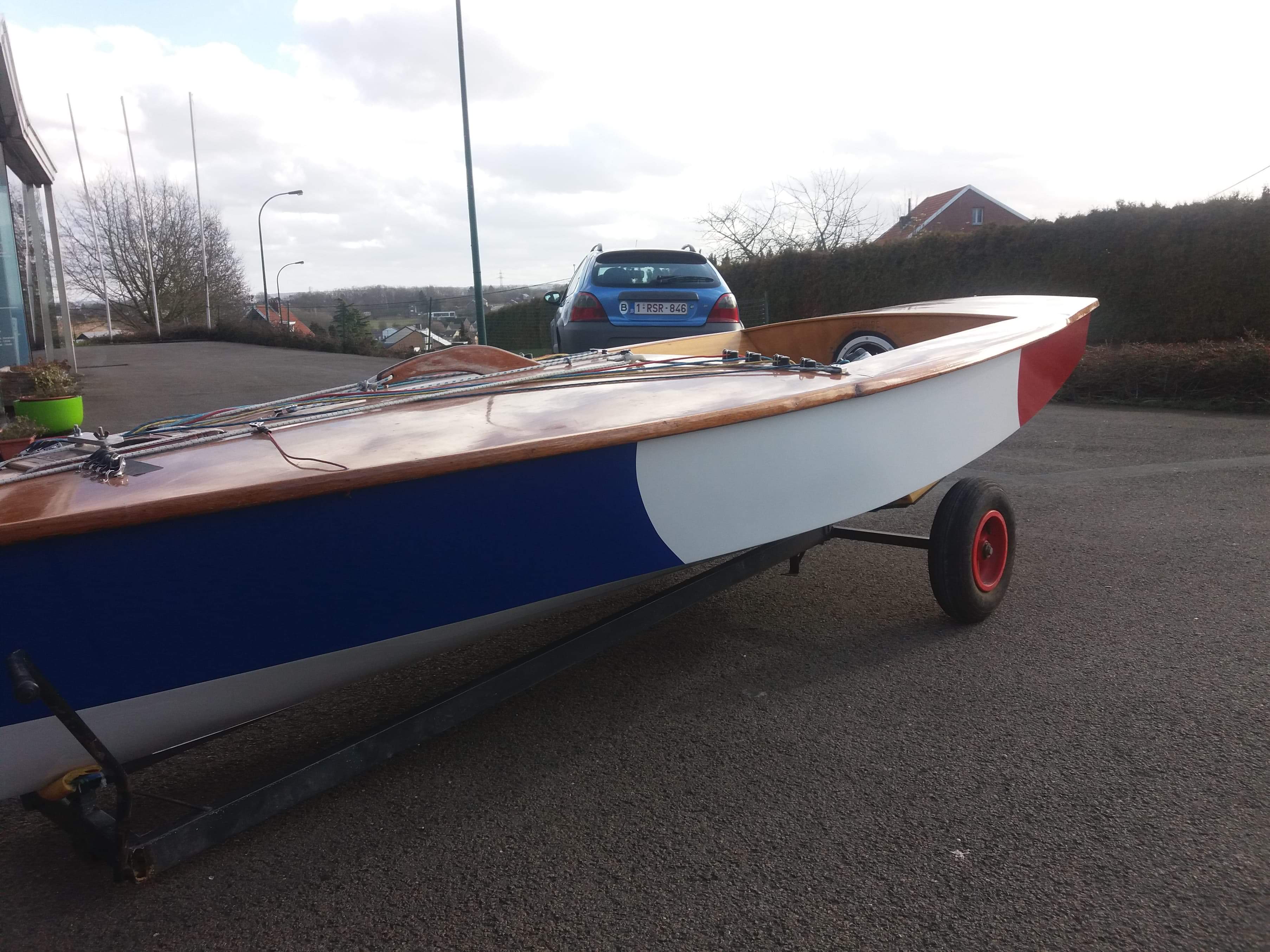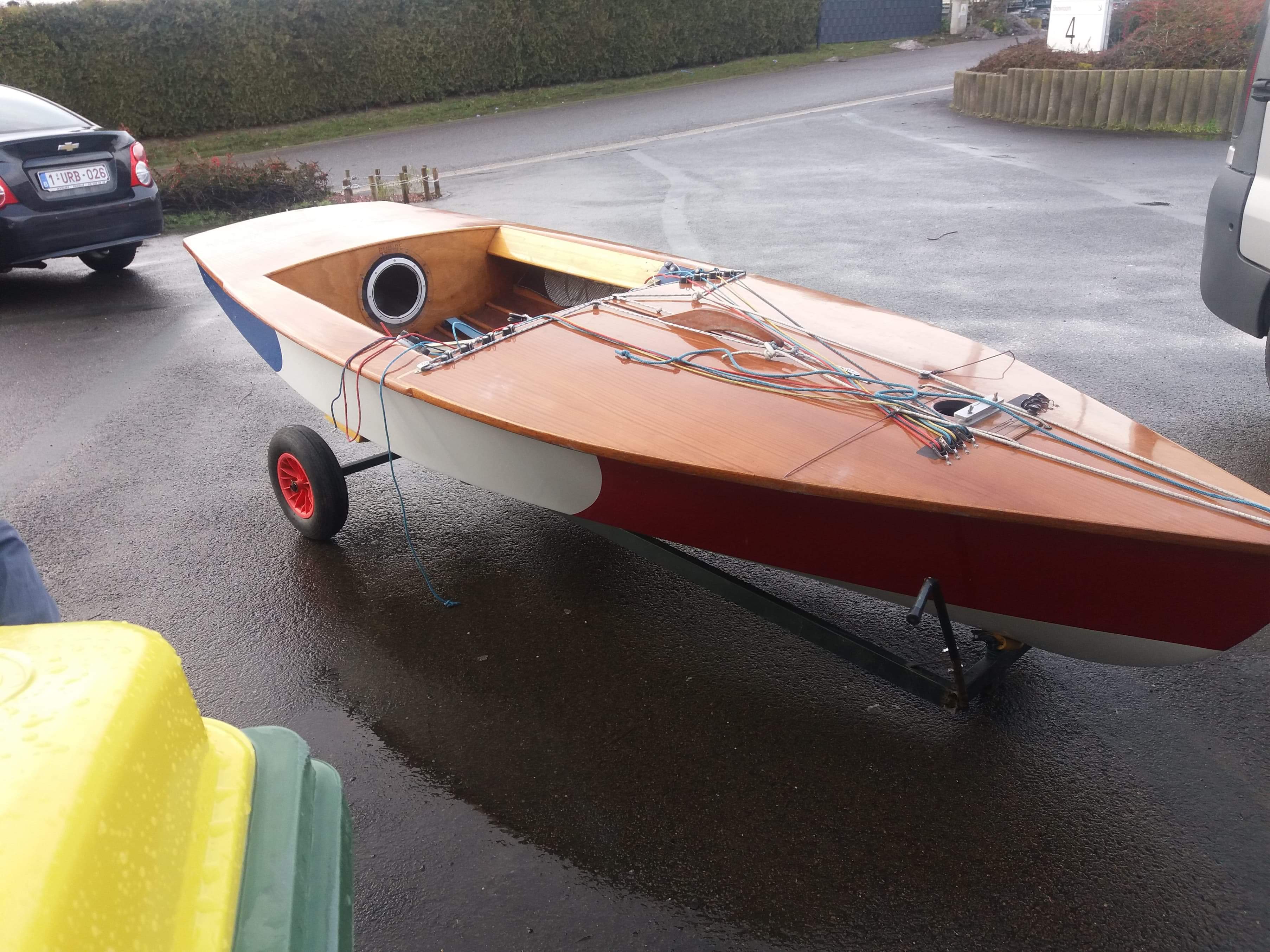 Yole OK tout bois + mat alu complet prêt à naviguer