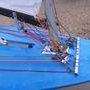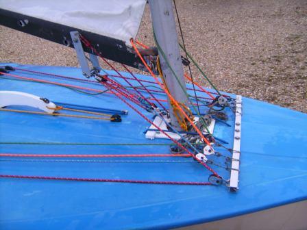 bôme alu avec hale bas à levier, élastique de rappel de la bordure, mat boyce alu avec ralingue assouplie pour une meilleur souplesse longitudinale, safran relevable.